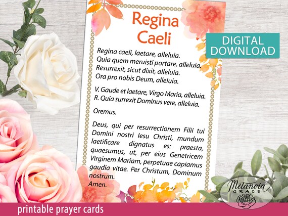 Regina Caeli Queen Of Heaven Printable Prayer Card Catholic Etsy